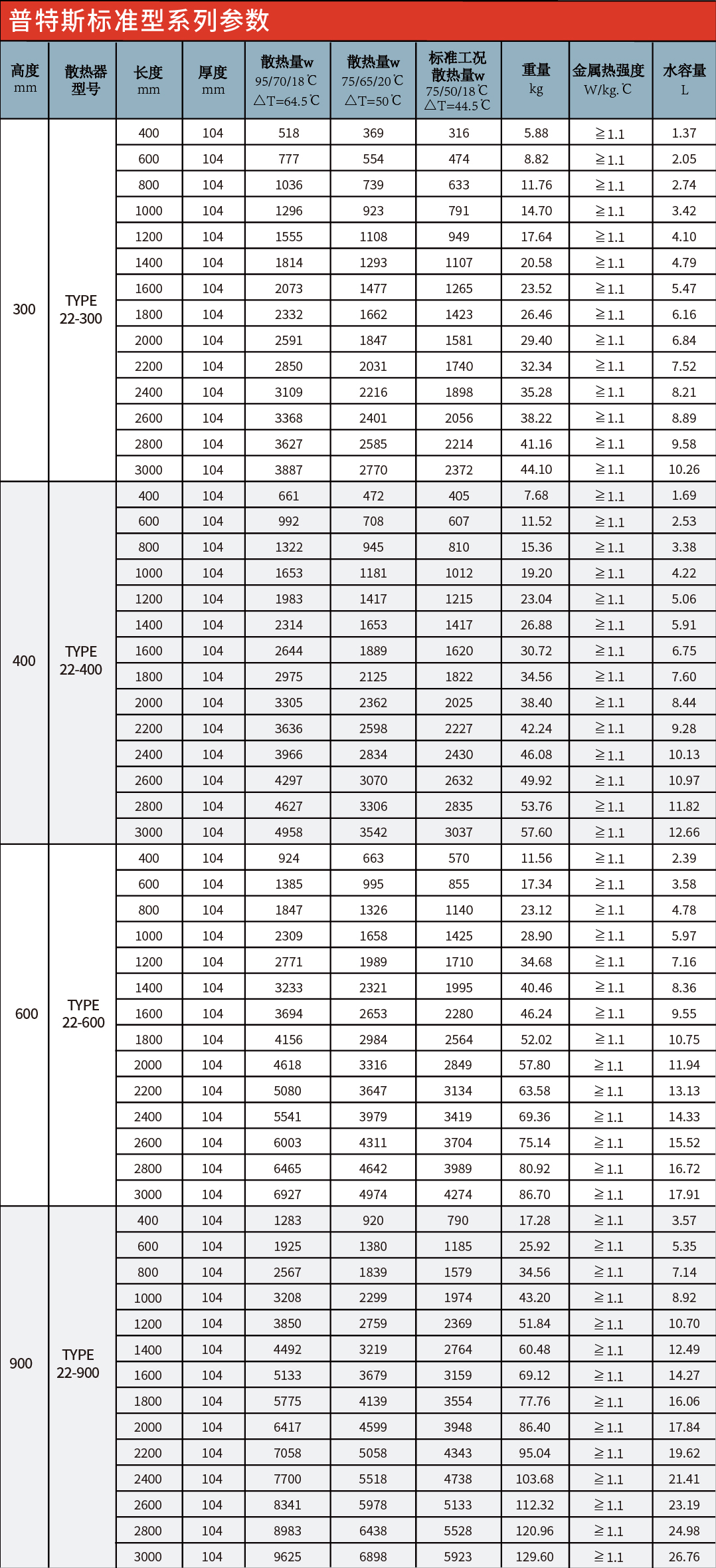 德国普特斯钢制暖气片 标准型S系列散热器产品参数