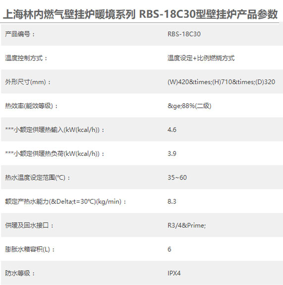 上海林内壁挂炉暖境系列RBS-18C30型壁挂炉